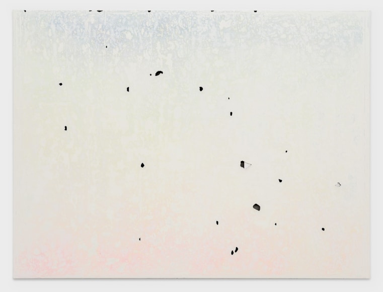 oil, acrylic, flashe, house paint, spray paint, ink, and urethane on canvas on panel