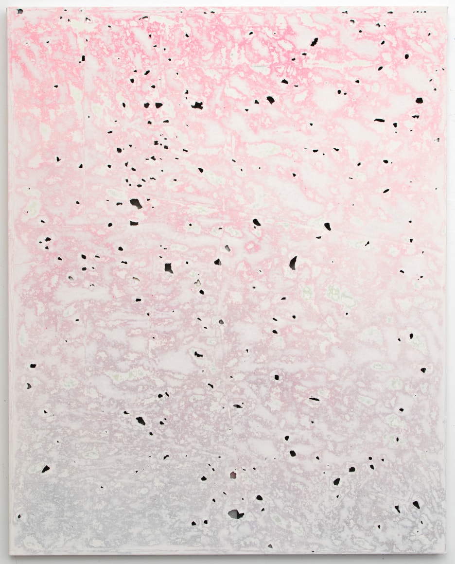 pulverized paintings, urethane, and fiber glass mesh on panel, with custom mdf frame