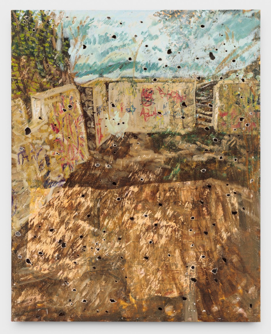 Oil, acrylic, flashe, house paint, and spray paint on canvas
