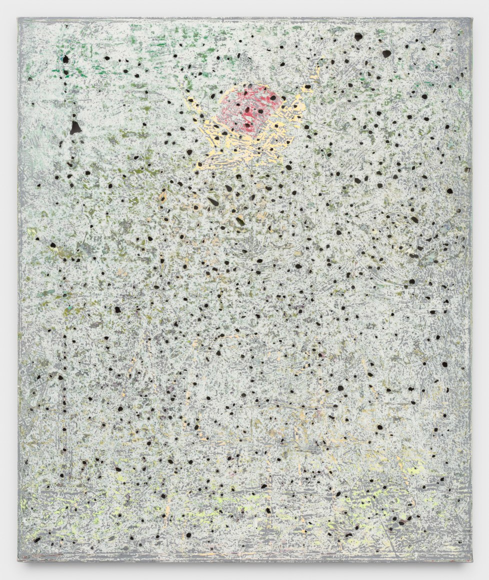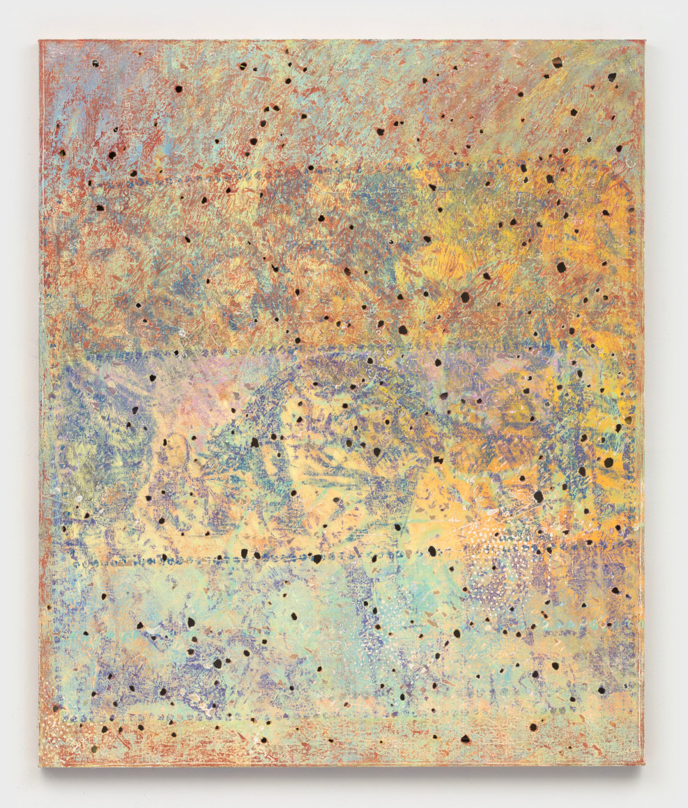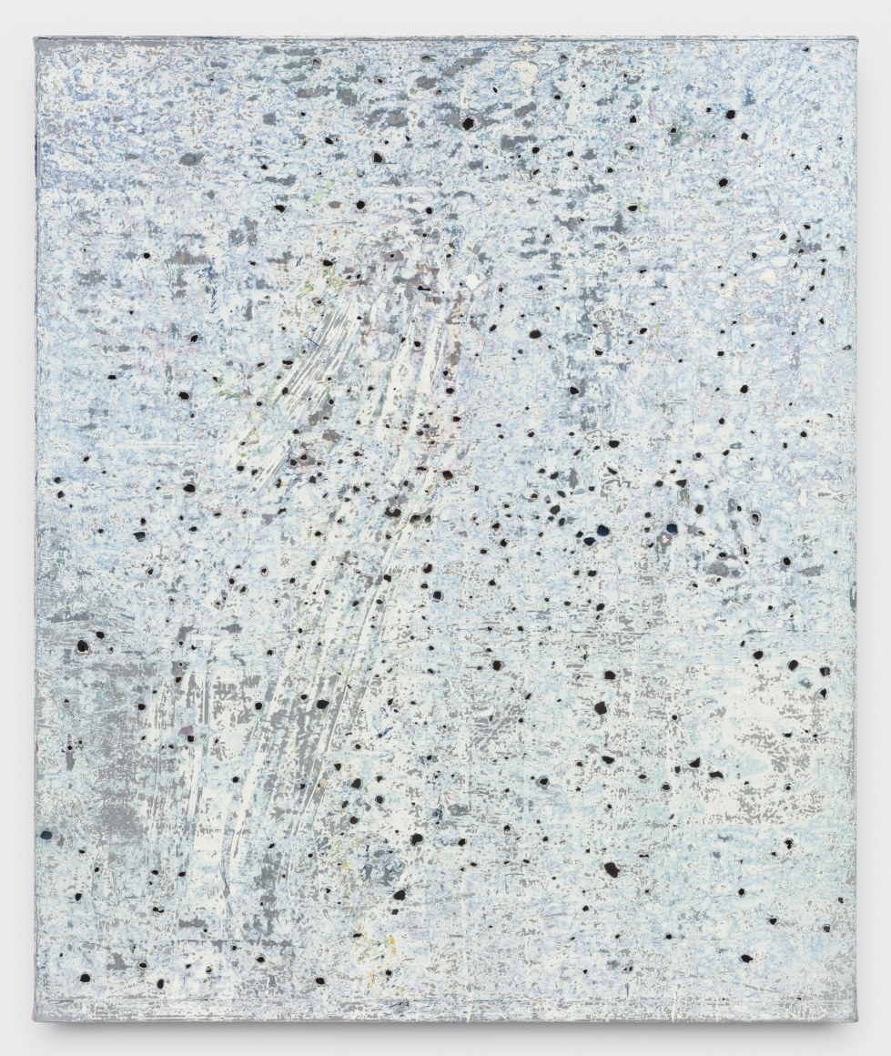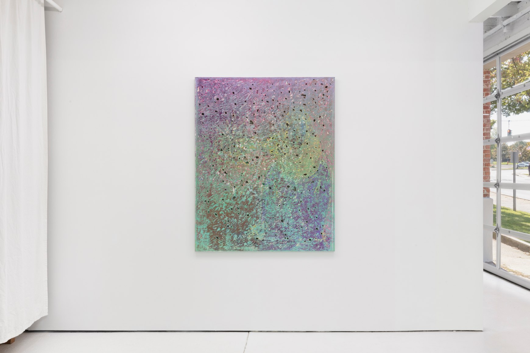 Within his art practice, Kadar Brock creates contemplative spaces, finding spiritual purpose within a secular, mundane existence. Brock’s process is lengthy, delicate, and tedious: he mines ephemera found while researching the New Age cult that informed his earliest beliefs—The Movement of Spiritual Inner Awareness—for images to process, then performs rituals of projection and release in the studio. He un-stretches and scrapes down his representational paintings of said images, coats the ground in primer-sealer, then sands the surface down to create textural, chalky tangibility. Brock then engulfs the broken new ground with another image in oil paint. He repeats this cycle until the many layers of painting and erasure grow unified—balancing cracks and chaotic holes that accentuate process. In soul flight, can make you feel good, and that's always right, with the flick of a switch, comes from high (2022), the work at once evokes a wintery scene, a well-worn rag, and a palpable expanse of both color and the lack thereof. Continually tearing down what has been built, Brock’s paintings cannot be created without loss, and that loss—or release—prompts transformation.