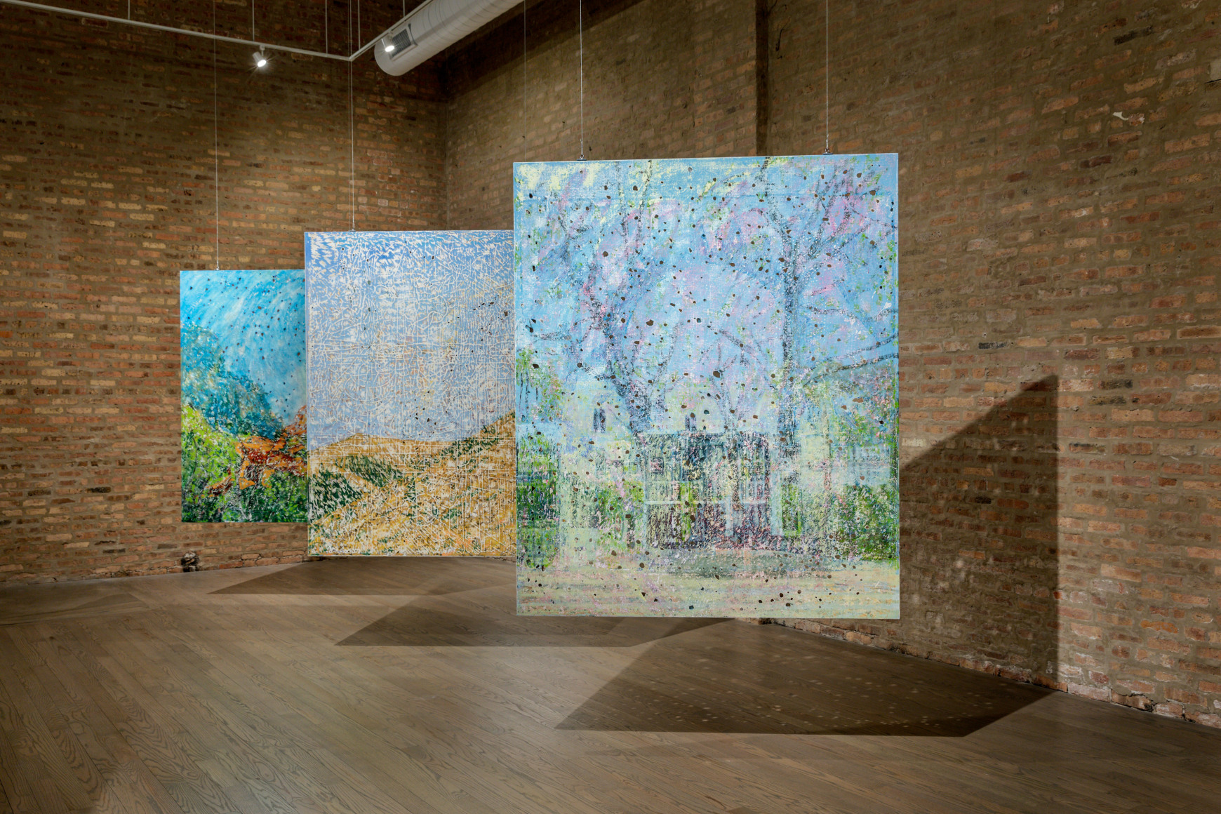 Over the last decade Kadar Brock’s practice has been engaged in an ongoing act of contemplative erasure. A self reflective process of recording imagery and eradicating it, continuously, over and over again, in an attempt to make sense of the fractured reality that is memory, formative experience, and the kaleidoscope of imagery our minds record as lived experience. In recent years, Brock has been diving into the history of a new age cult known as The Movement of Spiritual Inner Awareness (MSIA), and its founder John-Roger Hinkins, through research and pilgrimages to various sites throughout the country. This research and interest point deeper into Brock’s past, his upbringing within the cults’ teachings and its community, and his memories of this chapter of his life. While the work itself isn’t entirely about MSIA or its founder, John-Roger’s claim to be “The Mystical Traveler”, an all-knowing being that incarnates every generation to share its spiritual wisdom, does engage Brocks’ interest in how memory and identity are formed. How every layer of sediment in the composed bedrock of our identity is a chapter of information, mashed together; a totality made up of many collisions and revisions scattered through time.