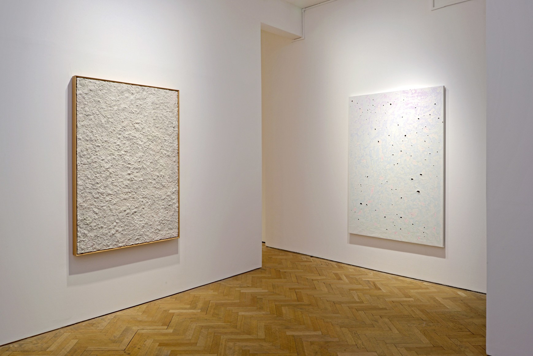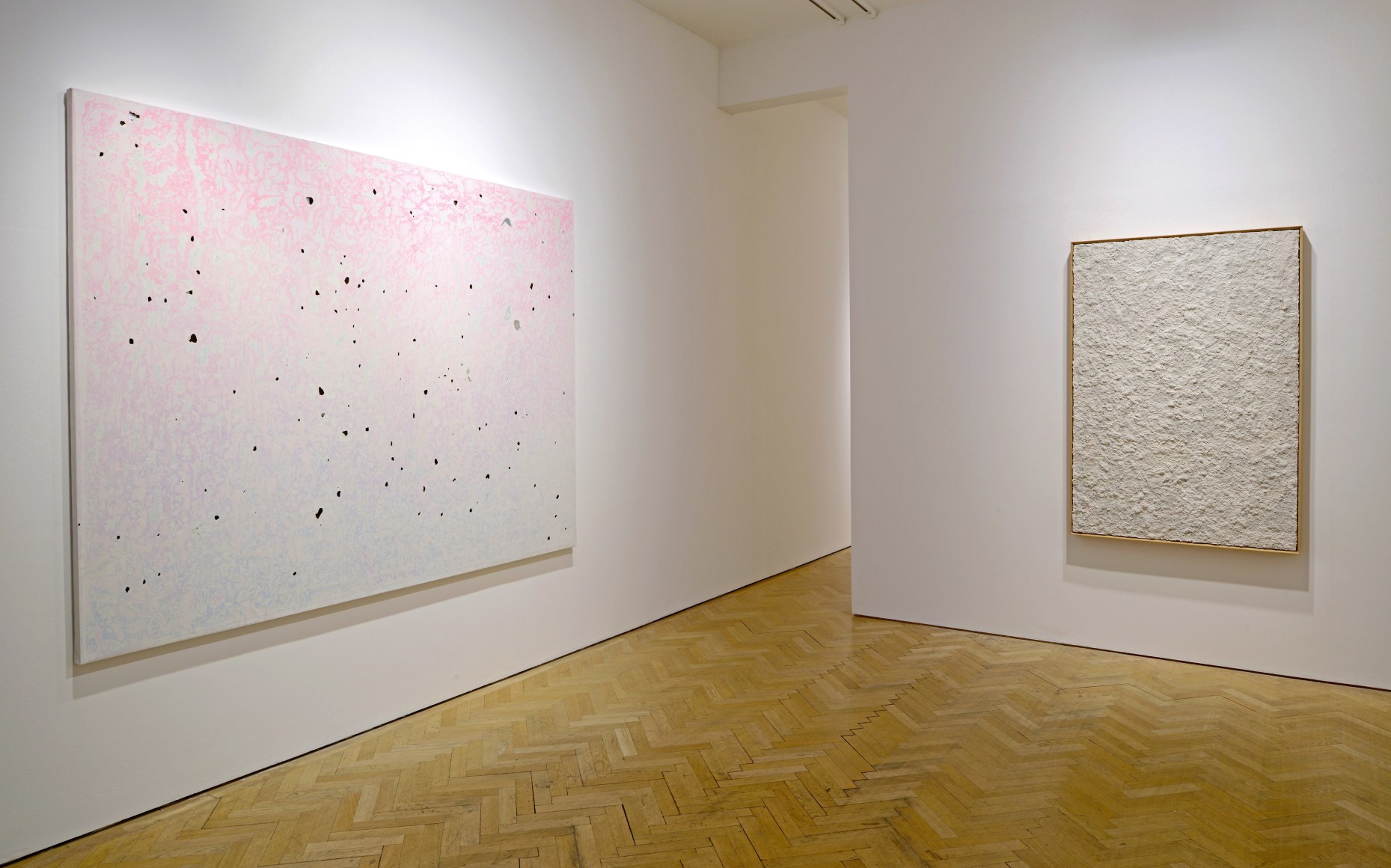 oil, acrylic, flashe, house paint, spray paint, and urethane on canvas